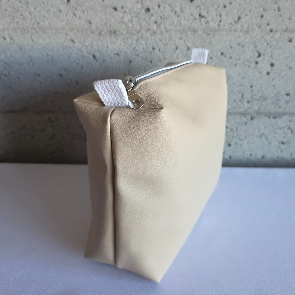 Large Boxy Pouch - Cream Vinyl with Gray Diamond Canvas